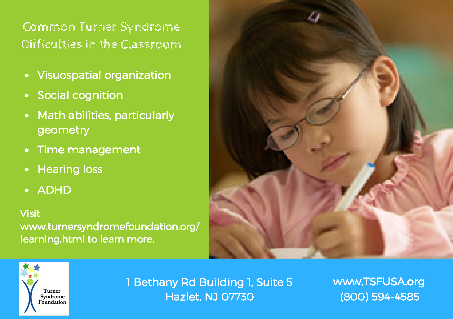 Statistically, in 1 out of every 160 classrooms there is a girl with Turner Syndrome. This guide will help teachers Identify and understand cognitive strengths and weaknesses, social functioning issues, and recommendations to create an optimal learning environment.
