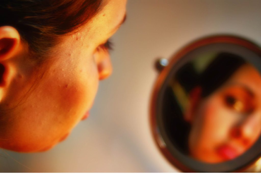 The physical challenges of TS include short stature (with an average adult height of 4’8”), and not experiencing puberty (including breast development, beginning menstruation, and being infertile due to having non-functioning ovaries). Individuals with TS often have other “atypical” physical traits not shared with their peers (e.g., “lazy eye” and/or drooping eyelids, a small lower jaw, a webbed neck with extra skin folds, etc.). Since TS affects every person differently, those with the condition may have all of these characteristics or only a couple.