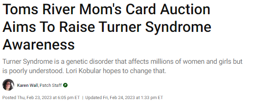 Last but certainly not least, Lori Kobular and her daughter Julie were featured in an article by the Toms River, New Jersey Patch. Lori, thank you for all you do for the TS community! You are an inspiration and a fierce advocate for your daughter and others with TS.